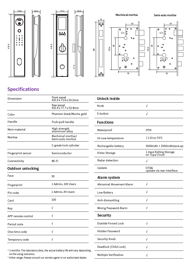 Stay in control anytime, anywhere. Monitor, manage, and unlock your door remotely via the Tuya app, with real-time access logs and security alerts.High-Capacity Rechargeable Battery